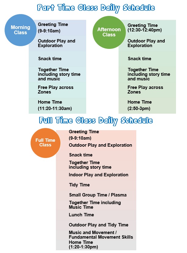 Have a look at our daily plans for PT Morning, PT Afternoon, and Full Time Classes